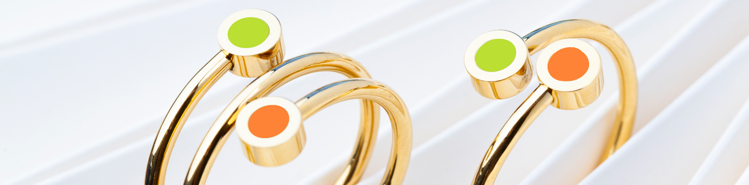ANILLO DOBLE NEW WAVE CON CHIPS NARANJA Y VERDE LIMÓN